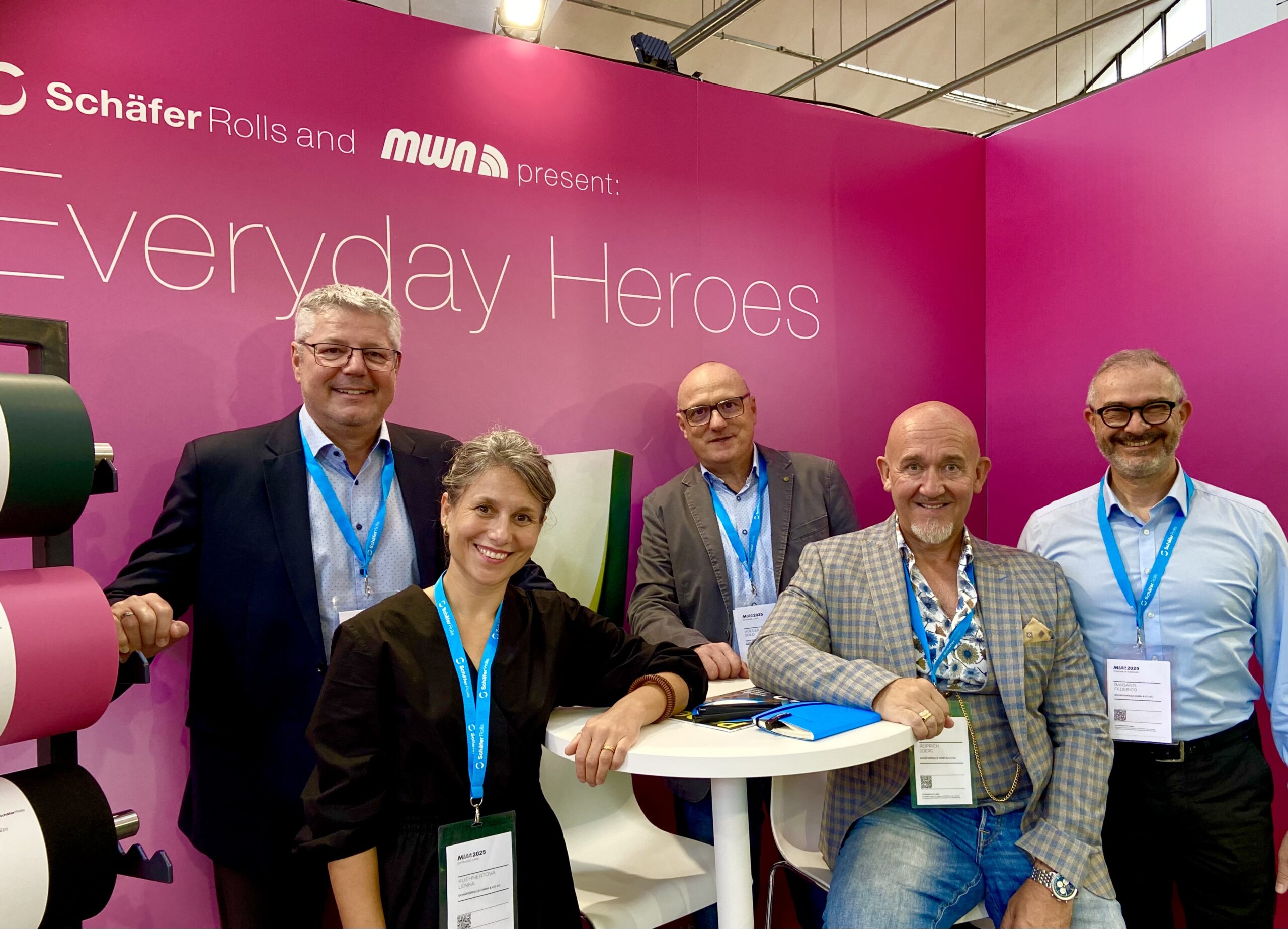 From 12 to 14 October 2022, SchäferRolls exhibited on a joint stand with MWN Niefern Maschinenfabrik GmbH at the 28th MIAC – International Exhibition of Paper Industry in Lucca (Italy). At the trade fair in the heart of Tuscany, the European centre of the tissue industry, the SchäferRolls colleagues from Germany and Slovenia presented new developments and application results of the product portfolio for the manufacturing and converting of paper, tissue and board.